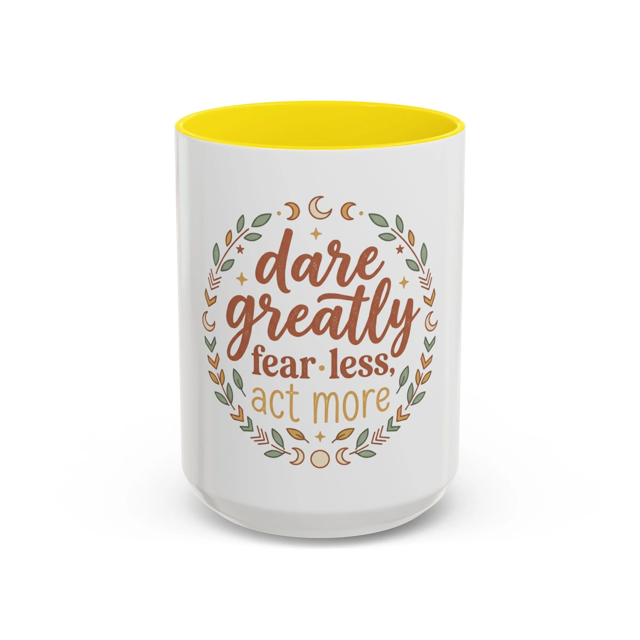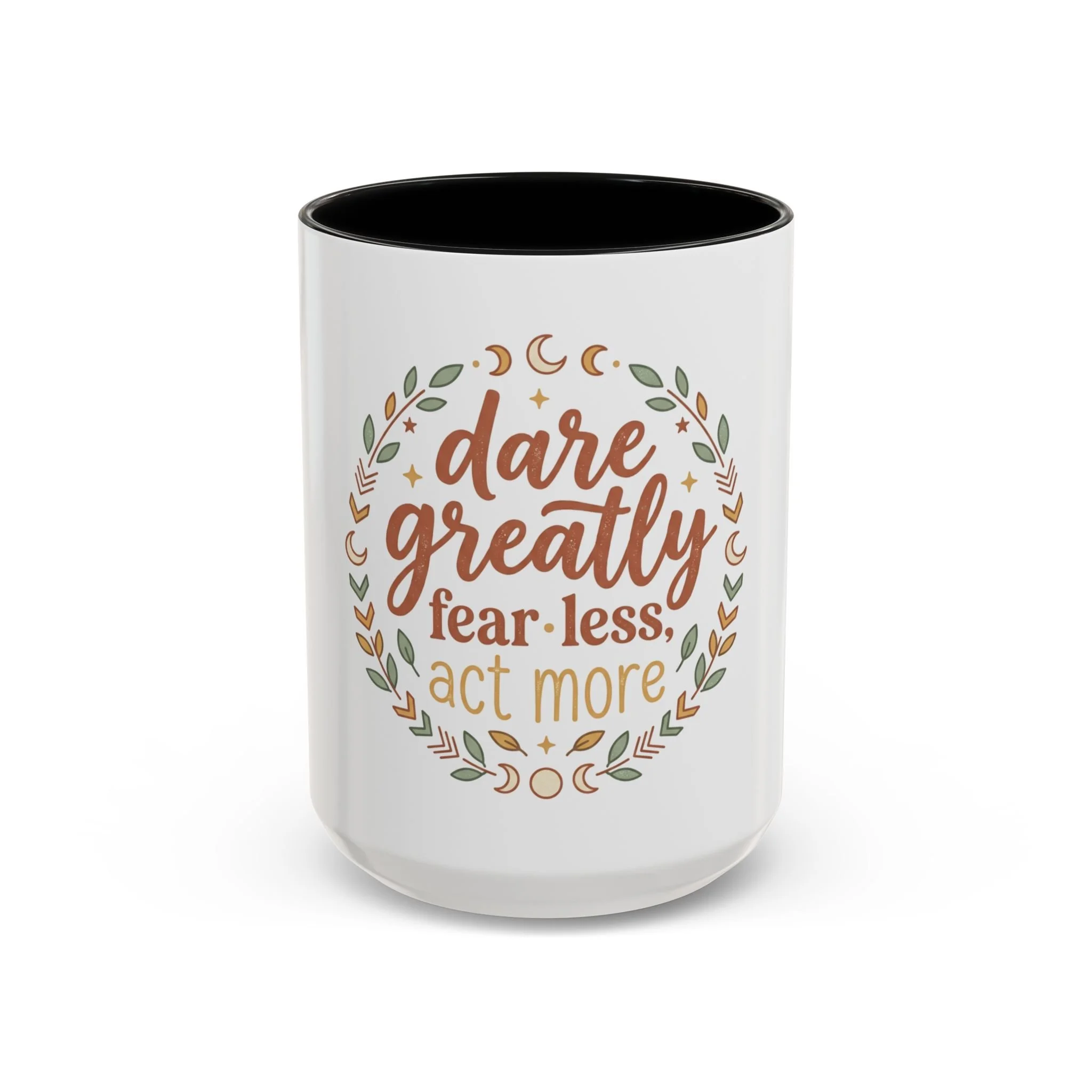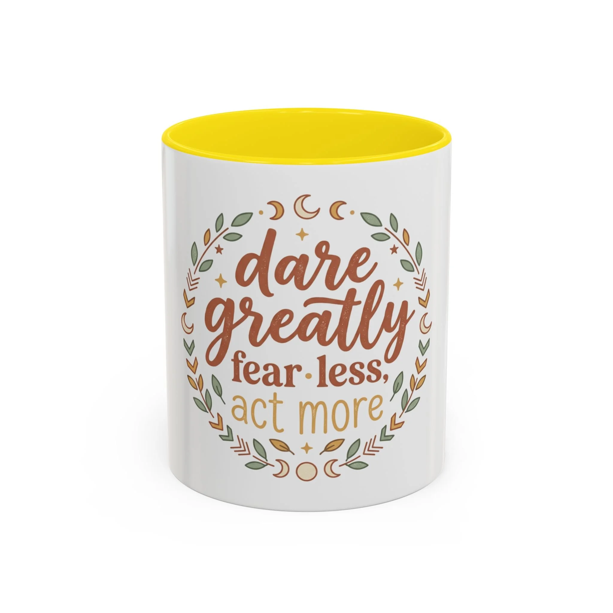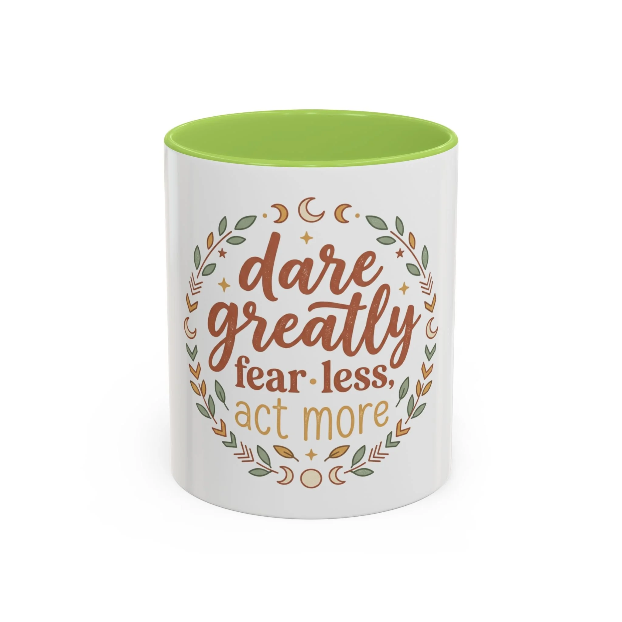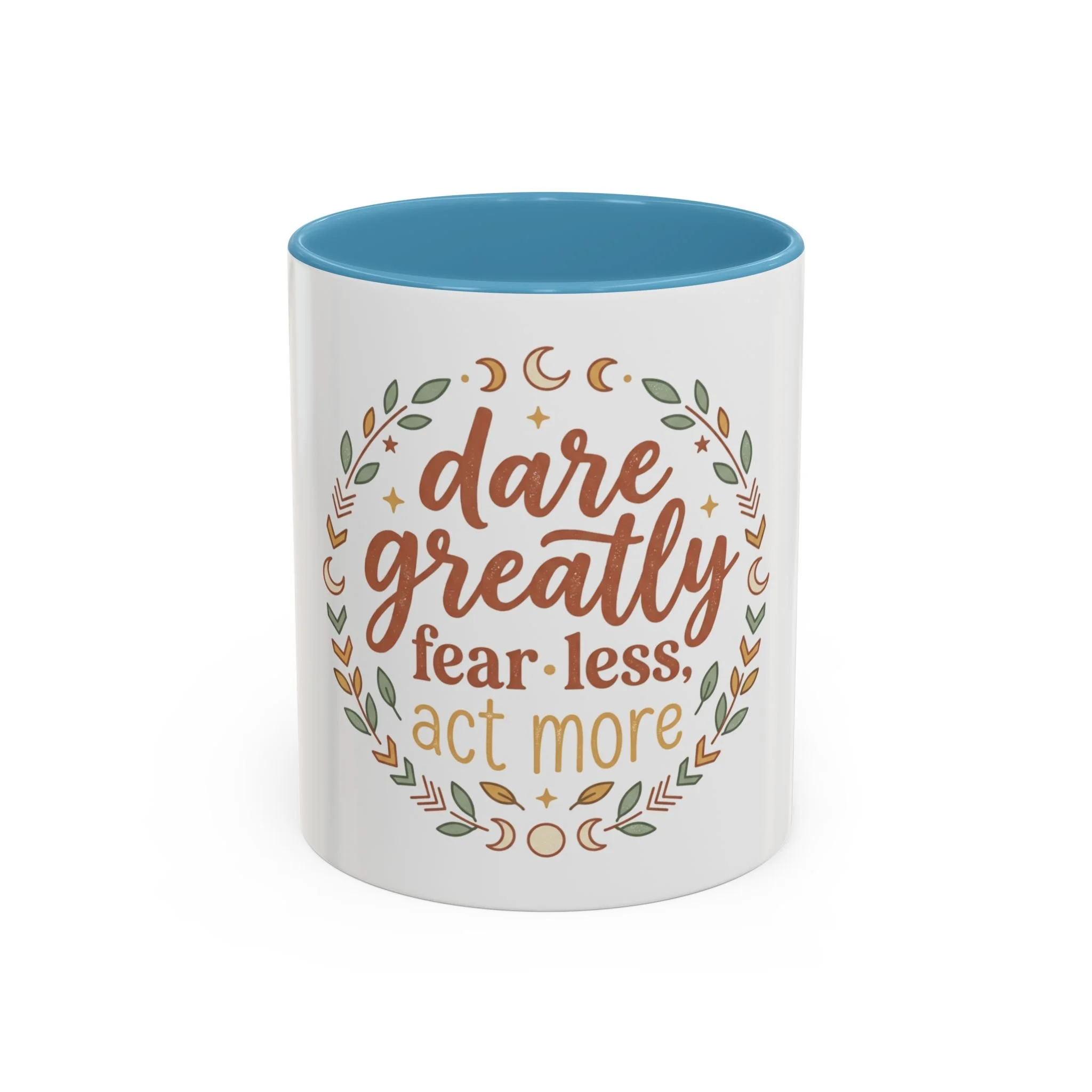 Accent Coffee Mug - "Dare Greatly: Fear Less, Act More" Inspirational Ceramic Mug