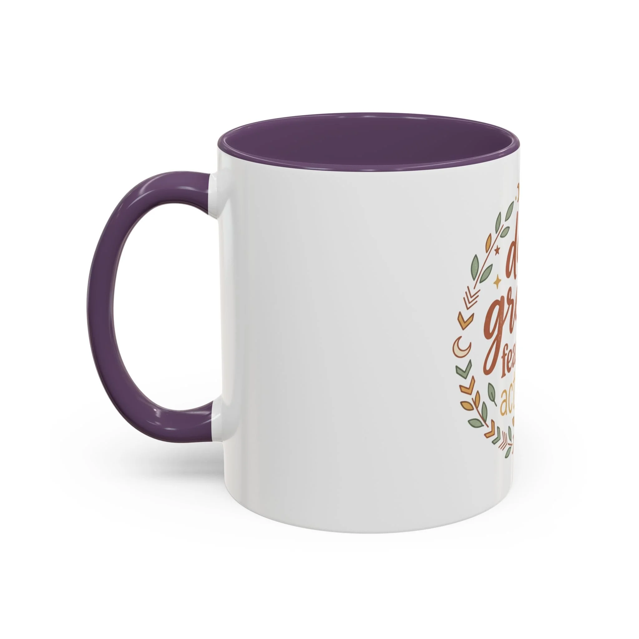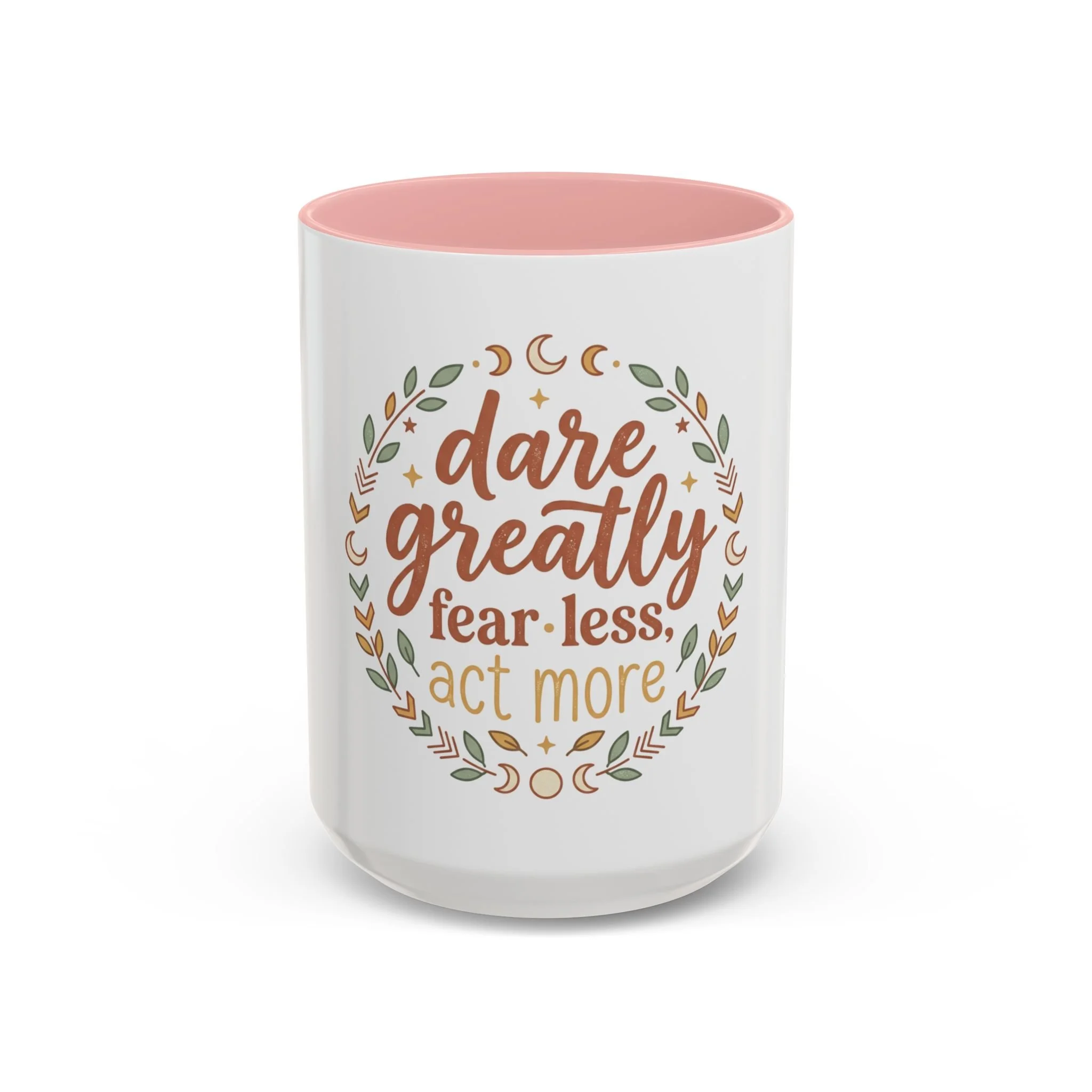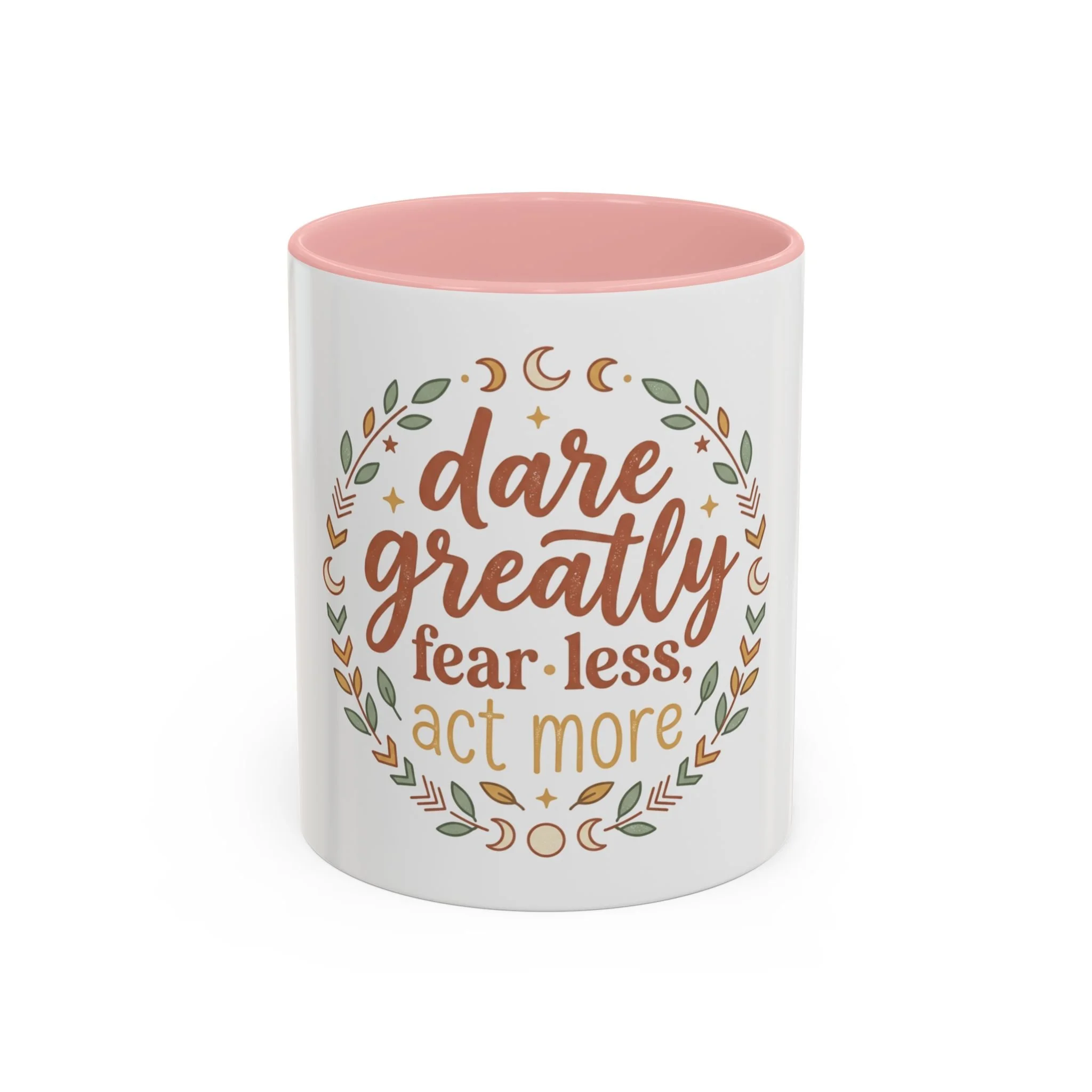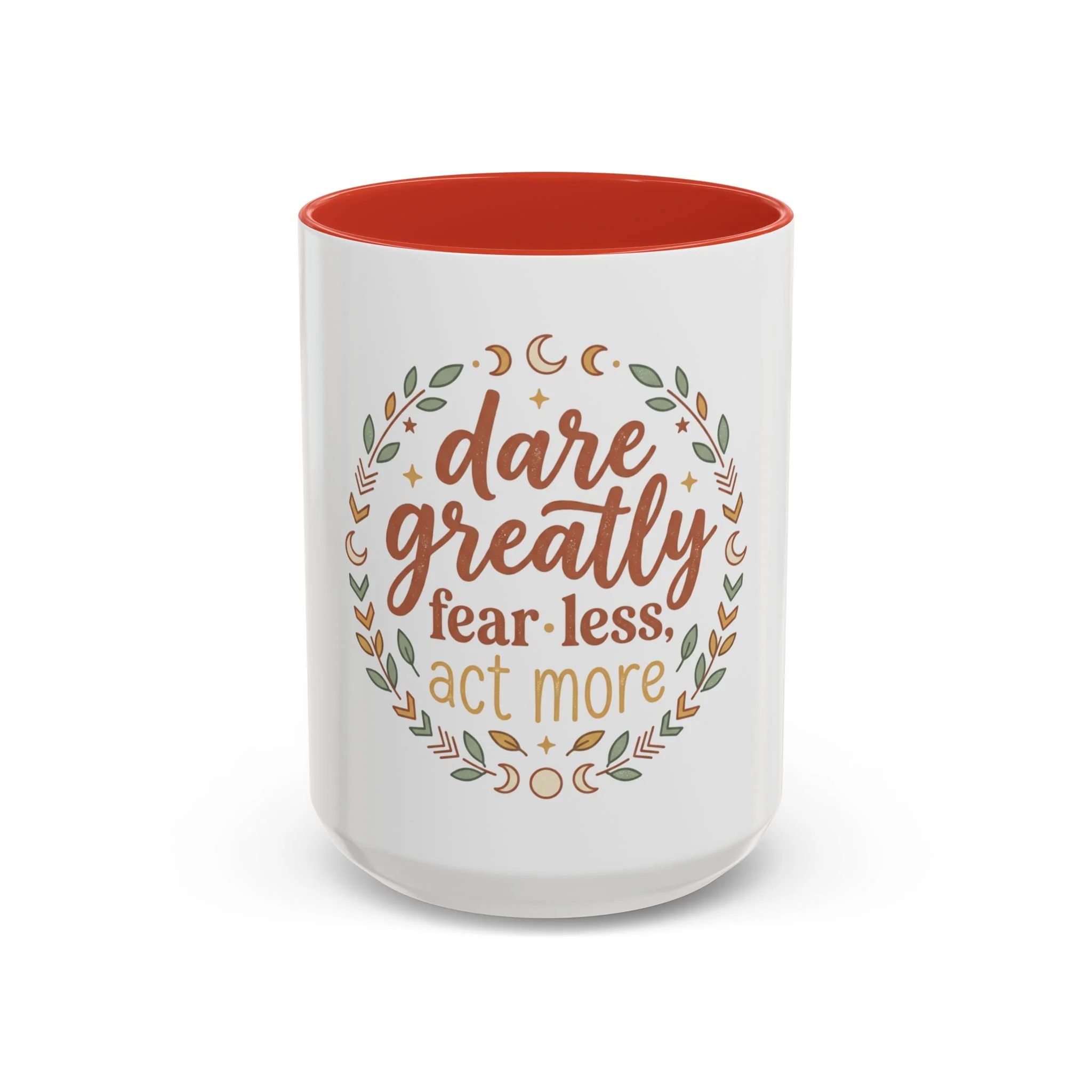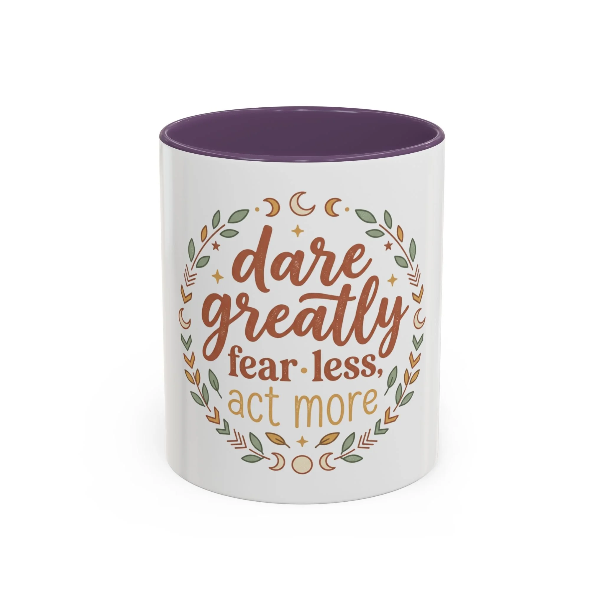 Accent Coffee Mug - "Dare Greatly: Fear Less, Act More" Inspirational Ceramic Mug